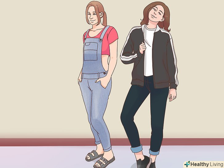 Одягайтеся вільно. Кайлі зазвичай вибирає широкі, а іноді декольтовані сорочки. Іноді Кайлі вибирає відкритий живіт і прикриває його шортами з високою талією. З точки зору вершини топа Кайлі, потрібно щоб присікалися різні стилі. Вона, як відомо, носить негабаритні толстовки з капюшоном і чоловічі футболки в стилі ретро, але коли представляється випадок, вона також приголомшливо виглядає в спортивній куртці і кольоровій блузці.- Додайте трохи різноманітності. Притримайте в гардеробі кілька нарядів, які не вписуються в ваш стиль, щоб додати родзинку в ваш гардероб.
