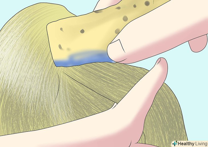 Покладіть просочену губку на волосся вище пальців і ведіть ними у напрямку до СЕБЕ, разом з губкою.