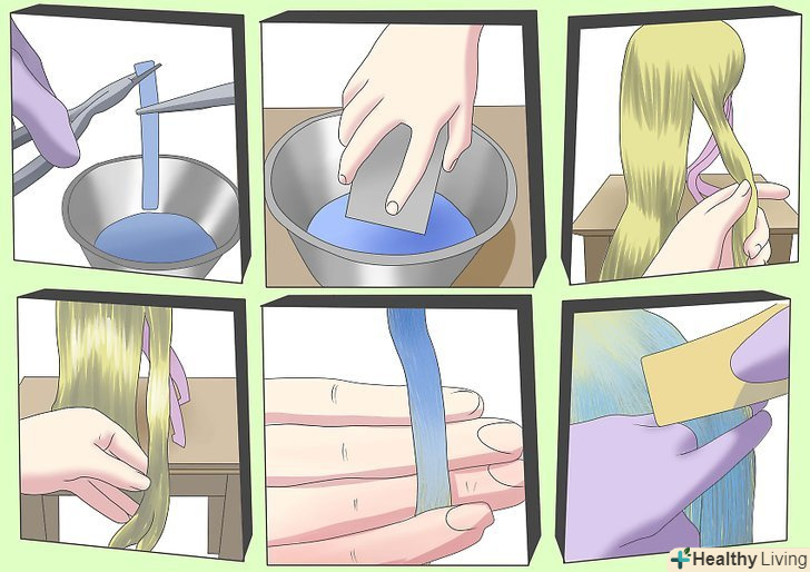 - Правила змішування кольорів мають місце. Якщо у вас жовтий перуку, а ви хочете синій, то фарбуйте в темно синій, інакше вийти відтінок морської хвилі.