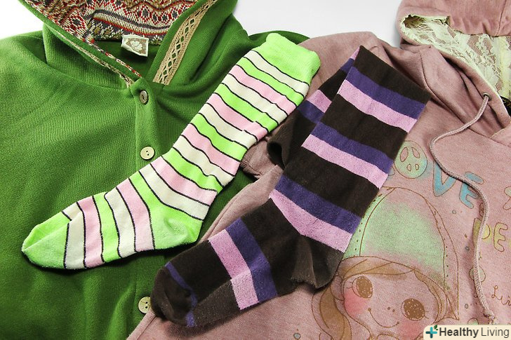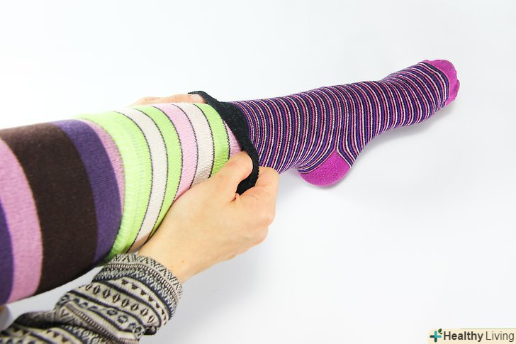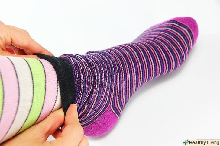 Підберіть правильні шкарпетки. у 80-х ви могли легко знайти шкарпетки, які були спеціально розроблені, щоб надягати їх один на інший. Ці довгі шкарпетки виготовлені з дуже еластичного матеріалу і їх можна легко призібрати. Матеріал, з якого вони зроблені, дуже тонкий і це запобігає ноги від сильного потіння. Якщо ви не можете знайти спеціальні шкарпетки, пошукайте барвисті, тонкі, які по довжині досягають до середини ікри або вище.