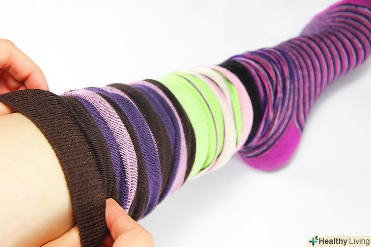 Натягніть першу пару шкарпеток, як можна вище по нозі. Носок повинен бути гладким, він не повинен грудкатися.