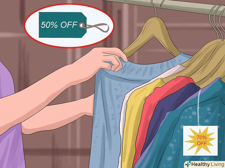 Купуйте несезонні речі. щоб заощадити на покупках, купуйте речі на розпродажах після завершення сезону. Проаналізуйте свій гардероб і подумайте, які речі вам потрібні на наступний рік. Потім виділіть бюджет на кожну річ. Купуйте дорогі і важливі речі (наприклад, ділові костюми) в січні, зимові черевики і пальто — в кінці лютого, а купальники і літній одяг — в кінці серпня. У цей час ці речі будуть на розпродажах, тому ви зможете заощадити гроші. Крім того, вам не доведеться ходити за покупками в наступному році. [13]