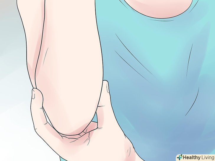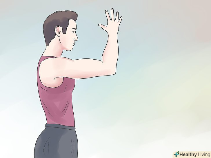 Зігніть руку під кутом в 90 градусів. переконайтеся, що ваше передпліччя перпендикулярно землі. Насправді, не має значення, яку руку ви використовуєте, але ви можете виявити, що виконувати наступні кроки легше, якщо використовувати свою робочу руку. [3]
