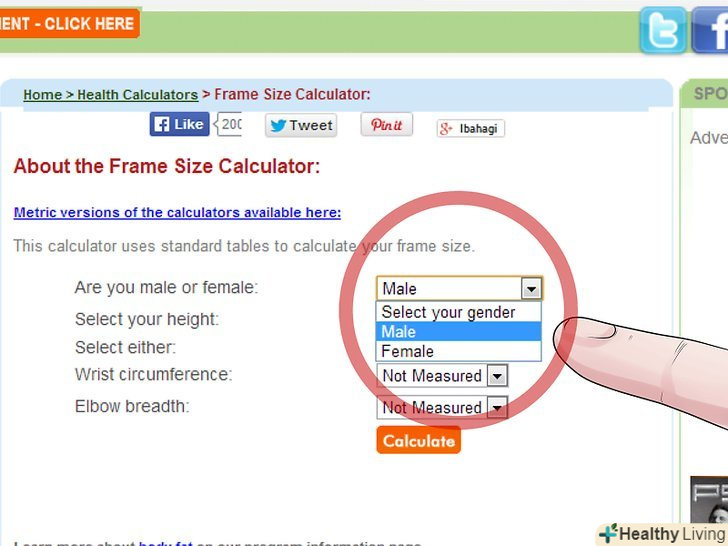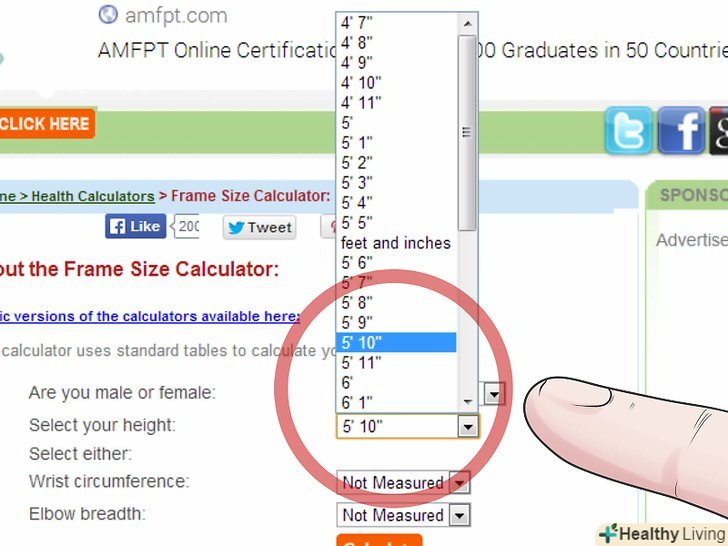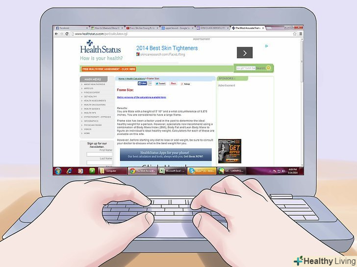 - Деякі калькулятори також можуть запитати дані окружності зап'ястя. Ви можете виміряти її за допомогою рулетки, обхопивши нею зап'ясті. [3]