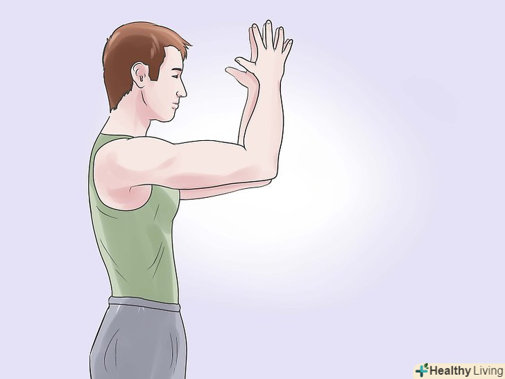 Зігніть лікоть. передпліччя має бути під кутом 90 градусів, великий палець вказує на вас. Верхня частина руки залишається на тій же позиції.
