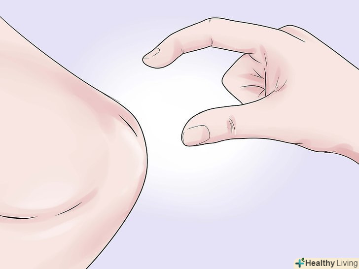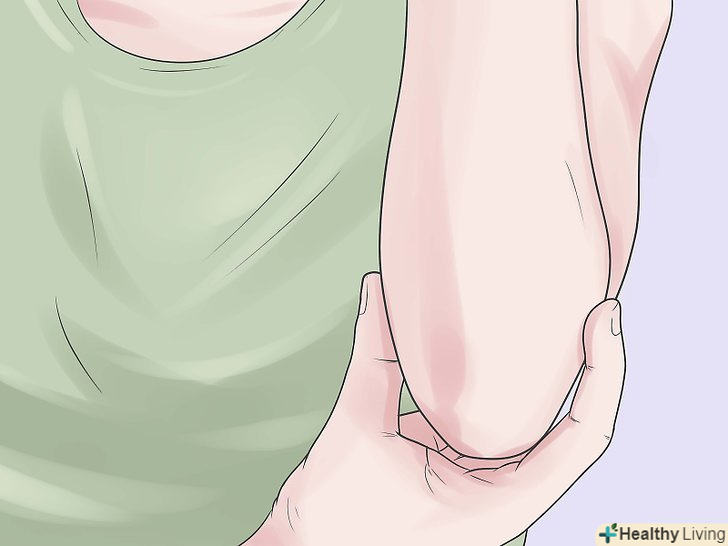 Посуньте великий і вказівний палець, як ніби хочете вщипнути щось. помістіть великий палець на внутрішню кістку ліктя, а вказівний – на зовнішню кістку.- Пальці повинні опинитися по обидві сторони ліктя, приблизно на одній висоті.