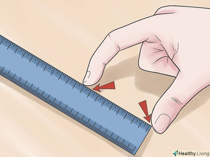 Зафіксуйте відстань між великим і вказівним пальцем. помістіть великий палець в початок лінійки або рулетки.