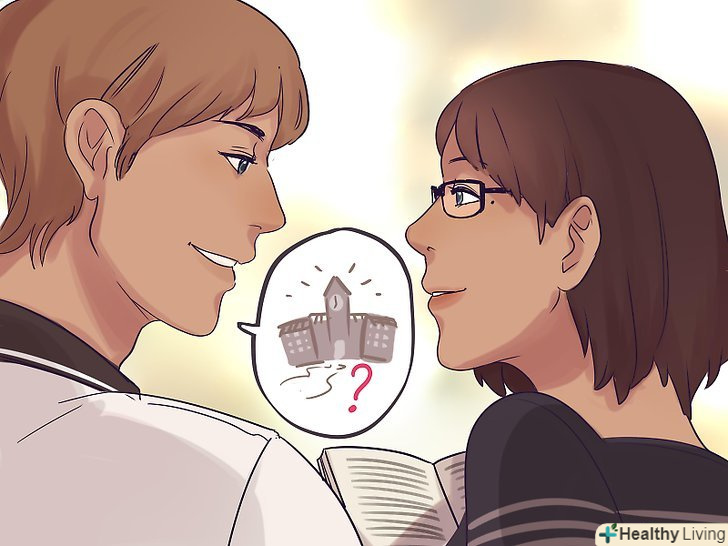 Знайдіть "двері" в кожному висловлюванні, щоб постійно рухати бесіду вперед. якщо ви напружено придумуєте, що б сказати людині, з яким ви фліртуєте, задайте питання і спробуйте знайти наступну тему розмови. Уявіть, що ви в коридорі і шукаєте двері, щоб пройти через них в інші кімнати.- Якщо хтось каже: "Я тільки що закінчив навчання", ви можете захотіти запитати, що він вивчав. Але що ви потім будете робити з відповіддю на кшталт "експериментальна фізика елементарних частинок і латинь як непрофільний предмет". Замість цього задавайте відкриті питання: "тобі подобалося в школі?"або" що ти збираєшся робити після закінчення навчання?"Дізнайтеся людину на більш глибокому рівні.