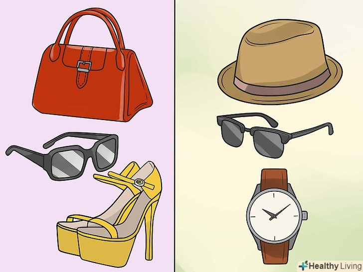 Підбирайте стильні аксесуари. аксесуари доповнять ваш витончений образ, коли ви визначитеся із загальним зовнішнім виглядом і одягом. Головне - не перестаратися, задіявши тонну аксесуарів за один раз. Кілька ключових речей зроблять ваш зовнішній вигляд витонченим і вишуканим. Ось кілька речей на пробу:- Прості чорні окуляри від сонця;