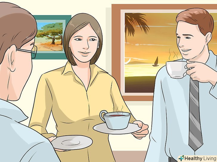Освойте витончений мову тіла. Якщо ви хочете бути витонченим, вам необхідно освоїти витончену мову тіла, щоб інші люди негайно надихалися вашою манерою подати себе. Витончені люди впевнені в собі, сповнені сил і спокійні, так що стежте за тим, щоб ніколи не йти занадто швидко, не шукати метушно втрачену річ в сумці і взагалі не робити нічого такого, через що ви виглядали б виснаженим або невпевненим в собі. Якщо ви хочете виглядати витончено, ваші рухи повинні бути розміреними і спокійними. Ось ще дещо, що можна спробувати:- Підтримуйте зоровий контакт повільно, але вірно. Не дивуйтеся на людей, з якими в даний момент у вас немає розмови, і не уникайте дивитися на тих, хто до вас звертається.