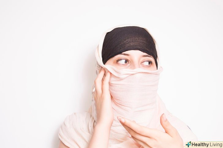 - Оберніть один кінець шарфа навколо голови до щік і заколіть.