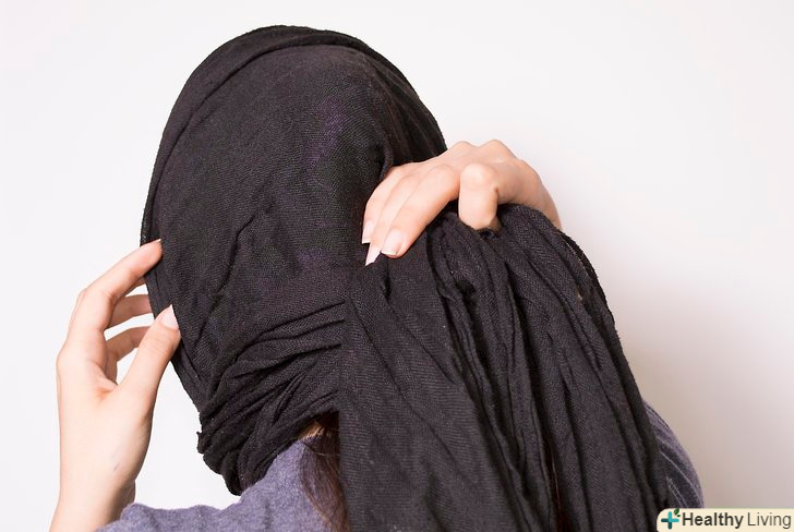 - Обв'яжіть його навколо вашої голови так, щоб складені кінці шарфа проходили через лоб.