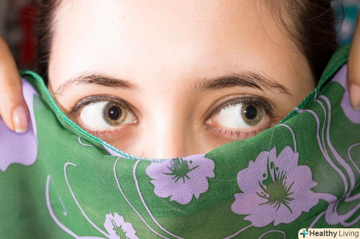 Підкресліть ваші очі, вибираючи хіджаби відповідних кольорів.- Карі очі: виділіть карі очі сміливим контрастом синього, зеленувато-блакитного і фіолетового кольорів. Теплі тони коричневого відтінку ваших очей можна врівноважити холодними відтінками пурпурного і синього, роблячи їх помітними.