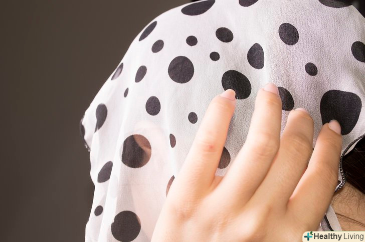 - Якщо ваш шарф досить довгий, оберніть його навколо ваших плечей і заколіть біля шиї і плечей. Якщо ваш шарф недостатньо довгий, тоді заколіть його знову під підборіддям.