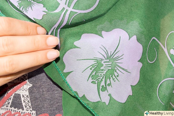 Додайте сміливу нотку до вбрання, вибравши шарф з великим принтом.- Знайдіть малюнок розміром з долоню і більше. Це допоможе уникнути перевантаження шарфа.