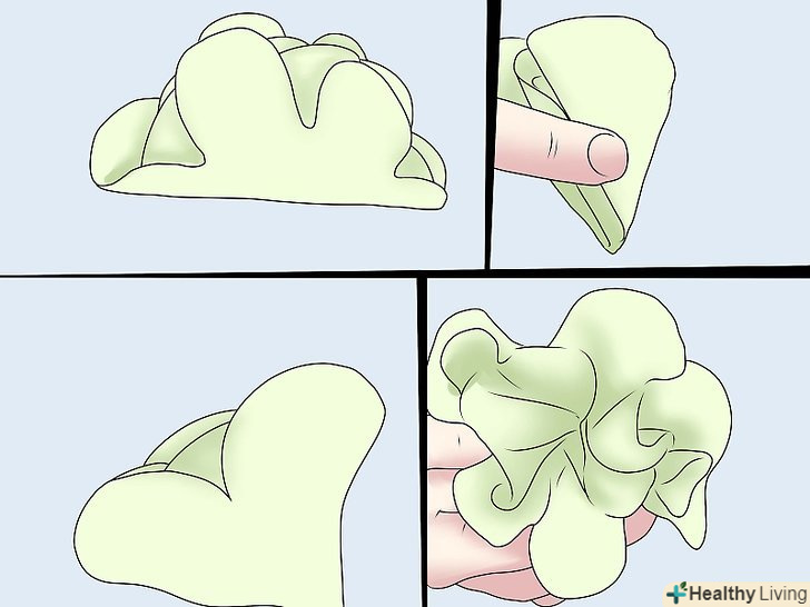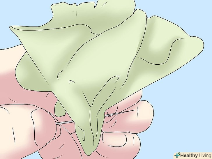 - Для створення кокетливою вуалі виріжте сердечко замість овалу. [2] серце повинно бути видно з нижньої сторони вуалі. Можете використовувати формочку або інший шаблон, щоб перекреслити на тканину, а можете намалювати серце від руки. Його розмір повинен приблизно становити 7,6 см на 7,6 см.