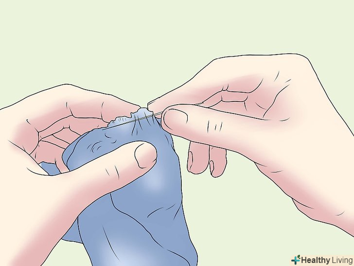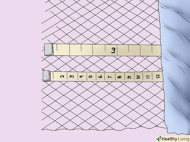 Зберіть тканину і прошийте рядок уздовж краю вуалі. розгорніть вуаль, зберіть її в збірки і прошийте в кожному стику або дірочці.- Закріпіть нитку в нижньому кінці вуалі. Перш ніж відірвати всунуту нитку, відміряйте її стільки, щоб вистачило прошити вуаль по всій довжині.