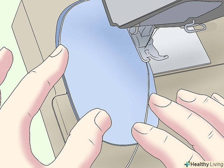 Виріжте овал з клейонки. [1] Овал повинен бути не більше 10 см в довжину і 5 см в ширину.- Клейонка є досить міцним матеріалом, використовуваним для формування капелюшків. Якщо ви ніде не можете знайти даний матеріал, використовуйте щільний тип тканини. Два шари канви або бавовни, складені лицьовою стороною один до одного, цілком підійдуть.