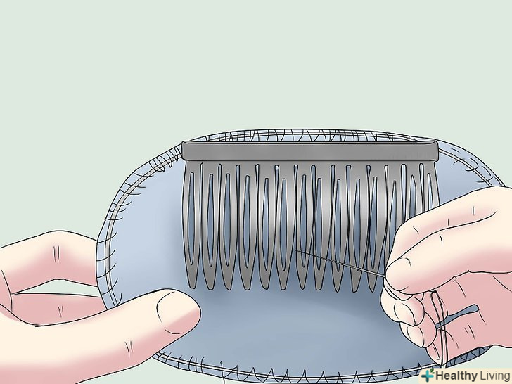 - Протягніть нитку між крайніми зубчиками по обох кінцях гребеня. Не робіть стібку вздовж всієї верхньої частини гребеня. Просто закріпіть гребінець на місці по його кінцях.