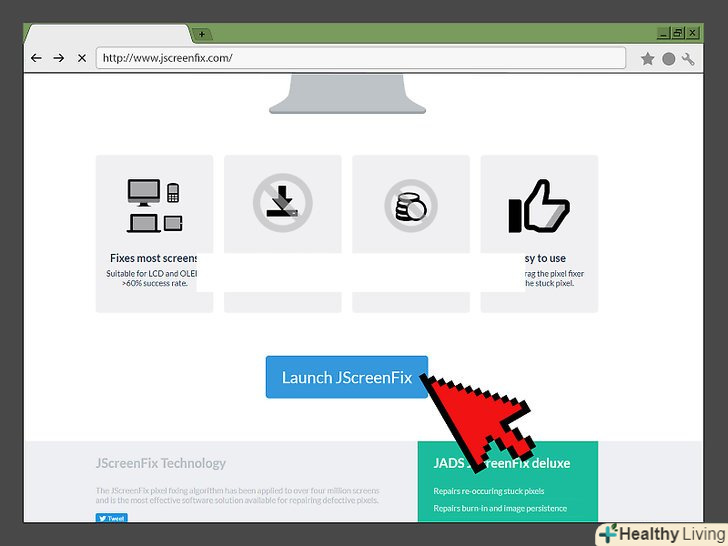 Перейдіть на веб-сайт JScreenFix.перейдіть за посиланням http://www.jscreenfix.com / у своєму браузері. JScreenFix-це безкоштовна онлайн-програма, яка може виправити застряглі пікселі.
