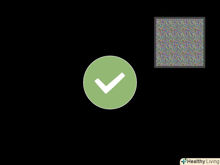 Переконайтеся в тому, що піксель дійсно просто застряг, а не битий.незважаючи на те, що нерідко поняття "битий" і "застряглий" Піксель рівноцінно використовуються для позначення проблемних пікселів, застряглі пікселі можна виправити, тоді як биті пікселі — ні. Якщо піксель має певний колір, відмінний від чорного, або некоректно змінює свій колір в залежності від фонового кольору, швидше за все, він просто застряг.[1]- Биті пікселі зазвичай залишаються білими або чорними незалежно від того, що відбувається на екрані. Незважаючи на те, що іноді білі биті пікселі називають "гарячими", принципово вони не відрізняються від чорних битих пікселів.