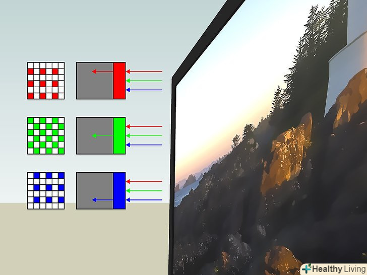 Зрозумійте принцип роботи пікселів. пікселі відображають комбінації червоного, синього і зеленого кольорів в залежності від того, що зображено на екрані. Піксель може застрягти з цілого ряду причин, включаючи занадто довге використання монітора або після тривалого періоду відображення занадто насичених кольорів. Коли Піксель застряє, він відображає тільки один колір, який може злегка змінюватися в залежності від кольору оточуючих пікселів.- Знову ж таки, битий піксель ніколи не змінює свій колір незалежно від стану оточуючих пікселів.