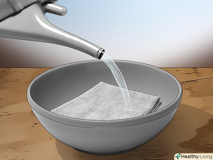 Змочіть мочалку гарячою водою.якщо можливо, нагрійте воду на плиті до перших ознак бульбашок газу на дні ємності (близько 88 °C), а потім занурте туди мочалку і просочіть її гарячою водою..