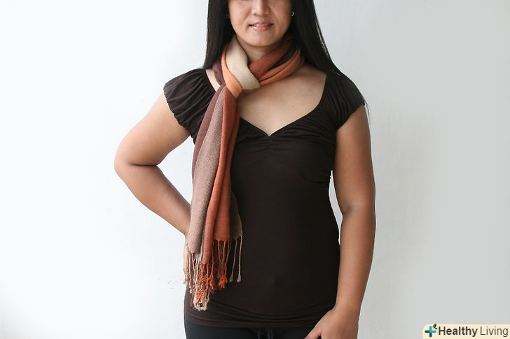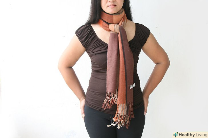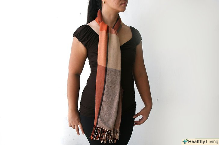Пробуємо традиційний оборот. розгорніть свій шарф по всій довжині. Потім один раз оберніть шарф навколо шиї. Затягніть петлю щільніше до шиї або залиште вільно висить. Можете один кінець залишити висіти спереду, а інший перекинути на спину.