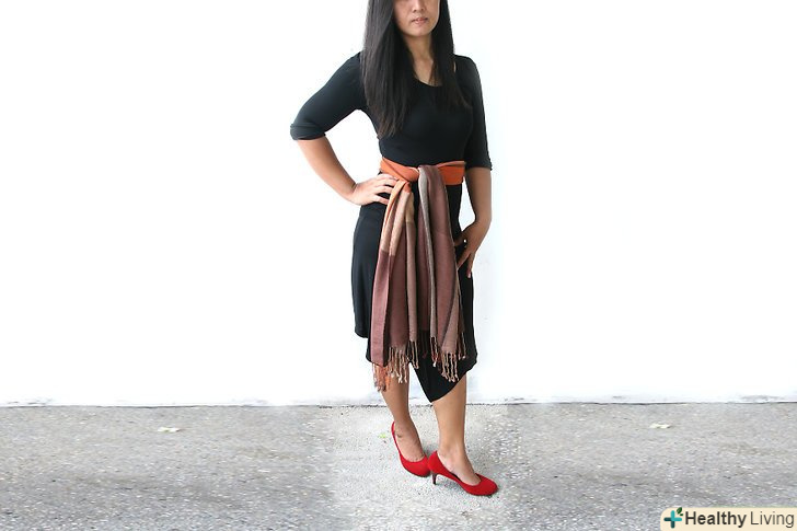 Робимо з шарфа пояс. якщо ви носите спідницю або сукню і хочете підкреслити вашу талію, оберніть шарф навколо талії і зав'яжіть його на вузол. Залиште краї вільно звисаючими або оберніть їх ще раз навколо талії і заправте під петлю.