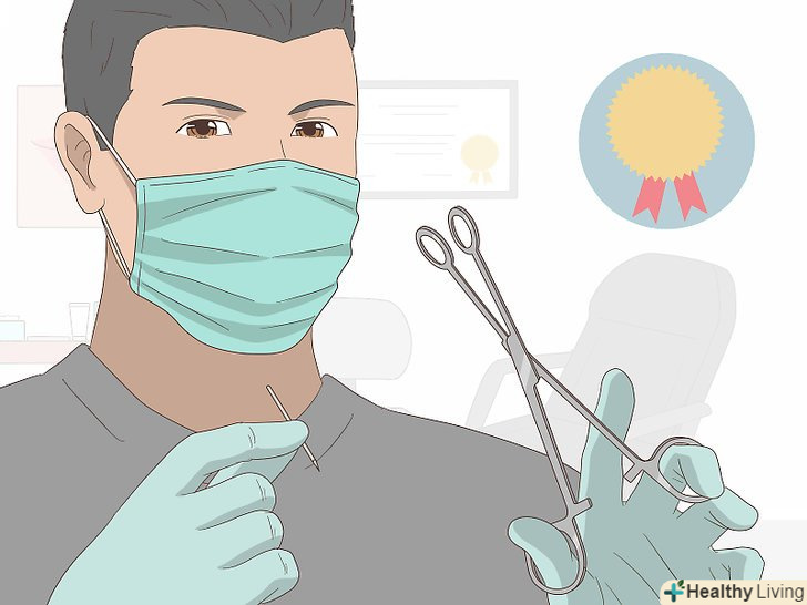 Запитайте поради у професійного майстра з пірсингу. переконайтеся, що людина, яка проколе вам сосок, є професіоналом з ліцензією. Як правило, ліцензію видають людині, яка пройшла навчання у майстра і отримала сертифікат про закінчення навчання. Зазвичай вони працюють в тату-салонах.- Дізнайтеся у майстра, яке прикраси для пірсингу в соску він би вам порадив, і обов'язково дотримуйтесь всіх його інструкцій по догляду за пірсингом.