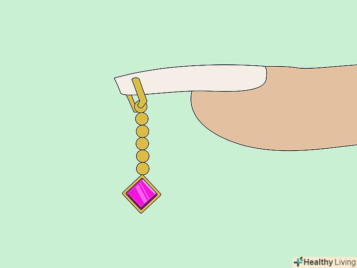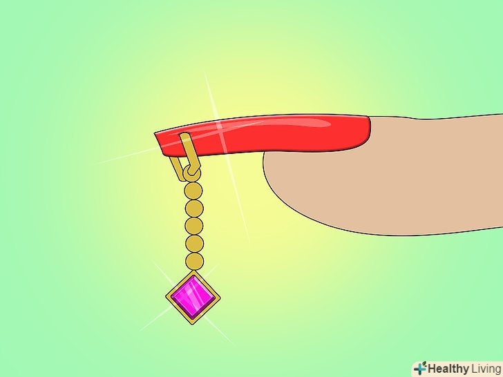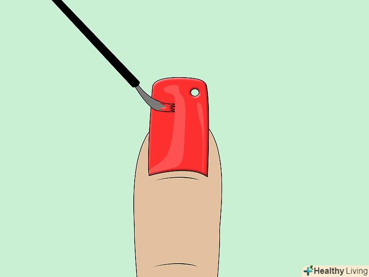 Спробуйте вставити ваше прикраса; переконайтеся, що воно добре сидить в отворі (якщо воно не підходить, можете скористатися чимось по ширше, ніж голка, щоб зробити отвір більше . .. просто пам'ятайте, що якщо ви підійдете занадто близько до кінчика нігтя, він може тріснути)