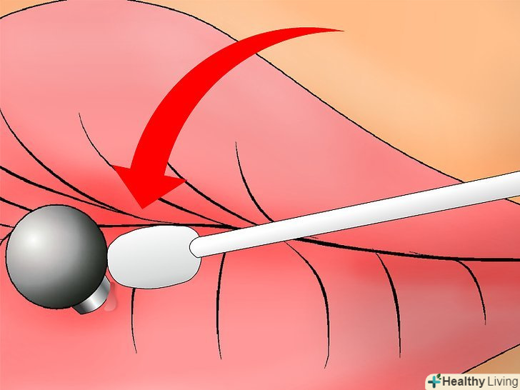 - Переконайтеся, що розчин потрапляє в усі місця, а не тільки навколо пірсингу. Незважаючи на те, що ви хочете, щоб потрапило якомога більше розчину, не варто провертати сережку. В іншому випадку ви ризикуєте занести інфекцію.