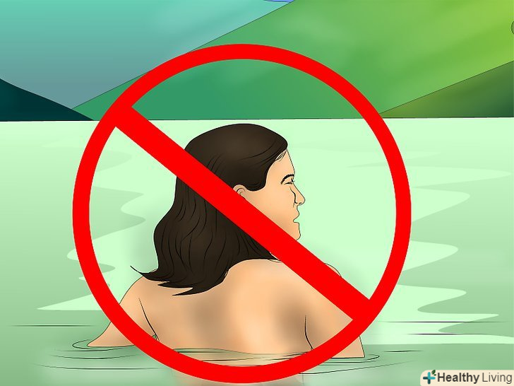 Не купайтеся в брудних водоймах. Вам слід уникати купання в озерах, басейнах, гідромасажних ваннах та інших потенційно небезпечних водоймах. Як і ванна, ці місця також служать джерелом бактерій, де ви зможете підчепити інфекцію. Якщо вам все-таки необхідно плавати, знайдіть водонепроникну пов'язку, наприклад, Nexcare Clean Seals.