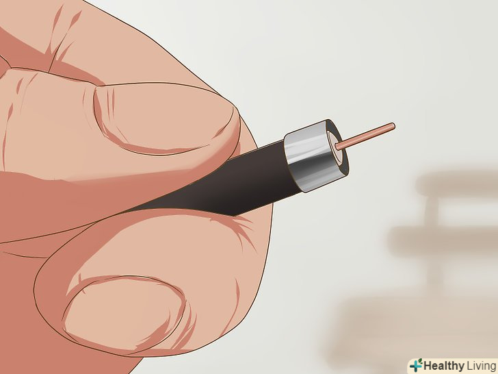 Визначте розмір вашого кабелю.термінологія, що використовується в кабелях, може збити з пантелику. Для визначення розміру подивіться на бічну частину коаксіального кабелю. У більшості випадків використовуються розміри RG-6 і RG-59.- RG означає "Radio Guide"("провідник радіосигналу"). Числа в назвах видів RG кабелю відносяться до його діаметру (59 означає .059, а 6 означає .06 і т.д.) і внутрішнім характеристикам кабелю, включаючи величини екранування і загасання в кабелі, що означає Як сильно загасає сигнал на одиницю довжини кабелю.