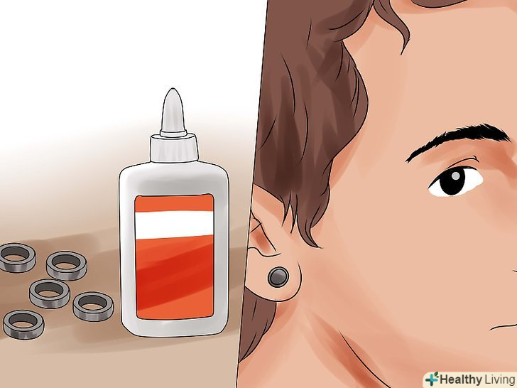 Зробіть тимчасовий Пірсинг. тимчасові кільця можна легко закріпити там, де ви хочете зробити пірсинг, щоб ви могли звикнути до нього.- Якщо у вас немає пристібається пірсингу, ви можете використовувати невелику бісеринку з клейкою стороною або невеликий ювелірний виріб і приклеїти його до обличчя за допомогою нетоксичного білого клею. Це може здатися дурним, але ви зможете подивитися в дзеркало з усіх боків.