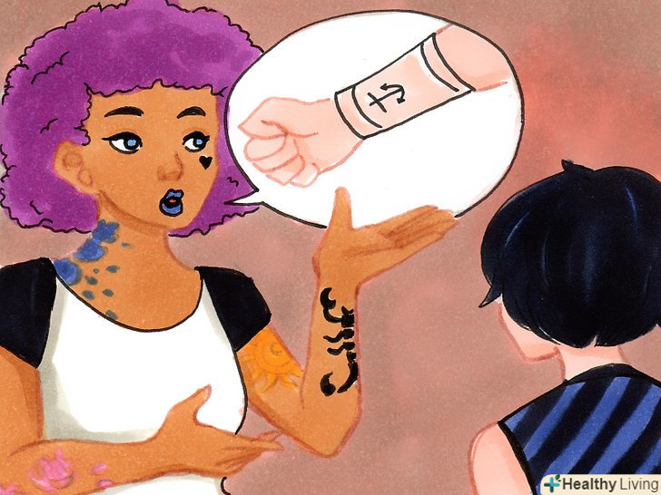 Придумайте вагому причину, чому ви зважилися на татуювання. це може бути підлим обманом, але якщо ви скажете, що тату у вигляді крихітного серця нагадує вам про покійного дідуся, батьки можуть стати м'якше. Якщо ви зробите хрест, скажіть, що він пов'язаний з вашою вірою і нагадує про необхідність бути хорошим християнином. Малюнок у вигляді трилисника може символізувати ваші ірландські коріння.- Це найкраще працює з лінійними, символічними татуюваннями, які ви можете легко асоціювати з чимось значущим.