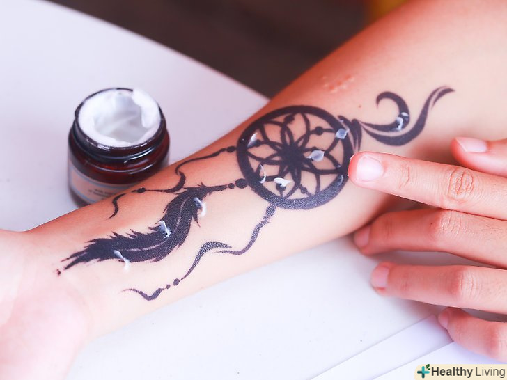 Зволоження. нанесіть шар натурального масла, вершкового масла або лосьйону на малюнок відразу після видалення залишків хни. Цю зону необхідно постійно зволожувати поки хна все ще знаходиться на вашій шкірі; так ви захистите малюнок і запобіжите його відшаровування. Багато придбані в магазині зволожувачі містять хімічні речовини, які можуть привести до передчасного освітлення малюнка, тому найкраще використовувати натуральні засоби.- Не слід використовувати зволожуючі засоби, які містять відбілюючі речовини та/або фруктові кислоти (альфа-гідроксильні кислоти). Ці хімічні речовини, як правило, позбавляють шкіру вологи і поживних речовин і можуть привести до передчасного стирання малюнка. [8]
