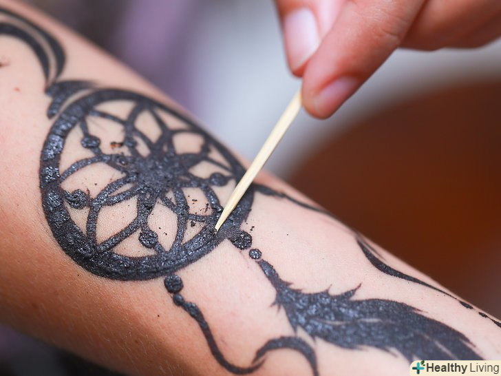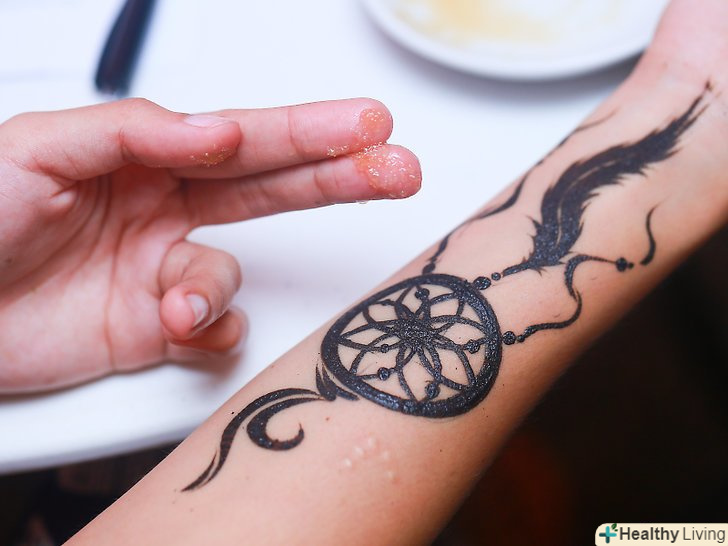 Не торкайтеся до малюнка відразу після нанесення. Паста з хни волога під час нанесення. Слідкуйте, щоб свеженанесенного малюнка не торкнулися одяг, волосся або навколишні предмети, інакше він розмажеться. Паста сохне протягом 5-10 хвилин, проте в якості запобіжного заходу можна і збільшити цей час. Хна підсохне протягом півгодини, і після цього малюнок вже не змаститься. [1]