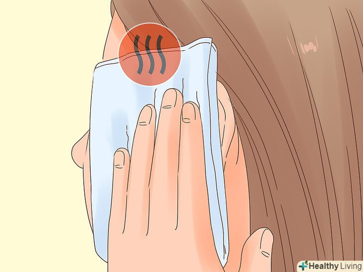 Прикладайте до вуха теплі компреси, щоб полегшити біль. змочіть махрову серветку для обличчя теплою водою або теплим сольовим розчином і прикладіть її до вуха на 3-4 хвилини. Повторюйте це в міру необхідності протягом дня, щоб полегшити біль. [13]- Після компресу обережно промокніть вухо паперовим рушником або шматочком тканини, щоб видалити рідину.