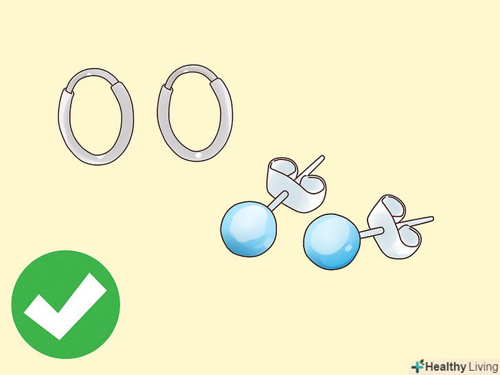 Якщо у вас підвищена чутливість до нікелю, носіть гіпоалергенні прикраси. іноді замість інфекції лікар може діагностувати алергію на нікель. В цьому випадку спробуйте носити сережки зі срібла вищої проби, золота, хірургічної сталі або іншого матеріалу, в якому не міститься нікель. Це допоможе зменшити ризик алергічної реакції. [17]- Алергія може викликати сухість, почервоніння і свербіж шкіри навколо місця проколу.