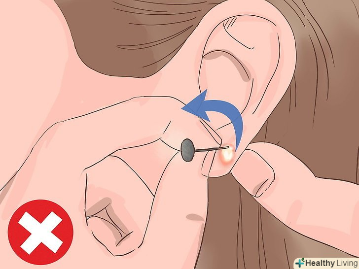 Залиште сережку в вусі, якщо тільки лікар не скаже вийняти її. видалення сережки може негативно вплинути на процес загоєння або привести до утворення абсцесу. Залиште сережку в Вусі до тих пір, поки не відвідаєте лікаря. [4]- Не торкайтеся до сережки, не крутите і не смикайте її, поки вона знаходиться у вашому вусі.