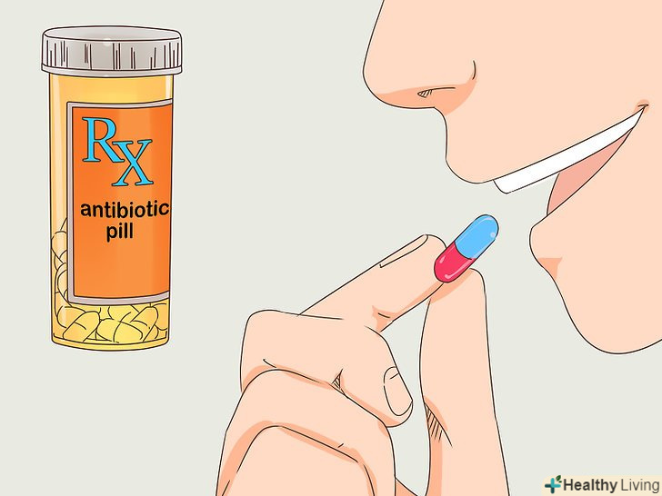 При більш серйозної інфекції приймайте Рецептурні таблетки. якщо у вас серйозна інфекція або підвищена температура, лікар може призначити антибіотики для перорального прийому. Приймайте таблетки відповідно до вказівок лікаря. Необхідно пройти повний курс лікування антибіотиками, навіть якщо вам здасться, що інфекція вже пройшла. [6]- Зазвичай антибіотики у формі таблеток призначають при інфекції проколеного хряща.