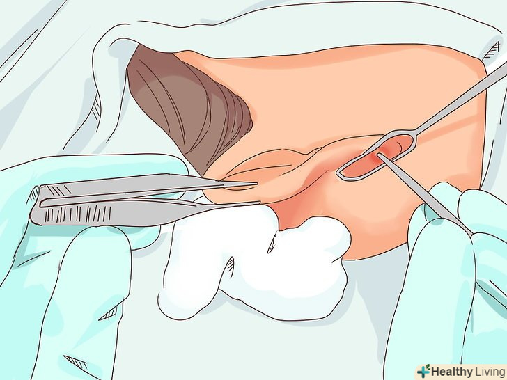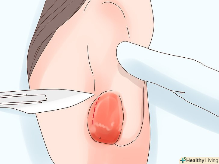 При утворенні абсцесу його слід осушити. абсцес являє собою рану, в якій накопичилася велика кількість гною. Якщо у вас утворився абсцес, лікар видалить з нього гній. Ця амбулаторна процедура може бути проведена при першому ж візиті до лікаря. [7]- Лікар може прикласти до вуха теплий компрес, щоб осушити рану, або проткнути абсцес.