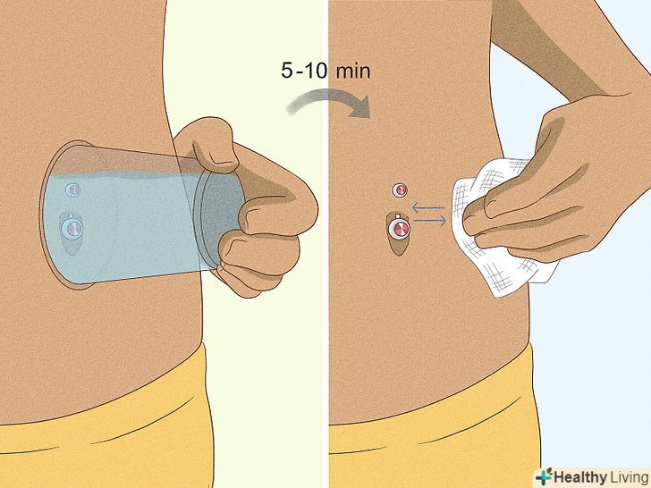 Намагайтеся тримати чашку над пупком протягом 5-10 хвилин. потім промийте холодною водою. Промокніть насухо стерильною марлею.