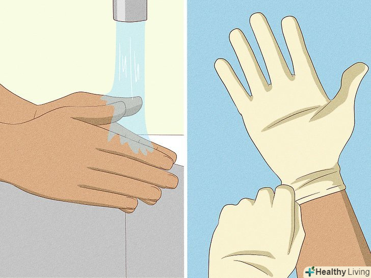Помийте руки водою з милом. одягніть стерильні рукавички.