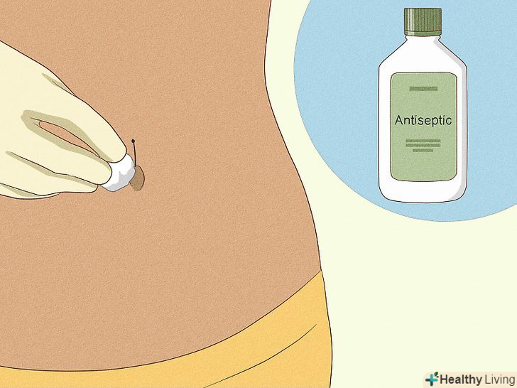 Намочіть ватяні кульки антисептиком і протріть місця проколів.