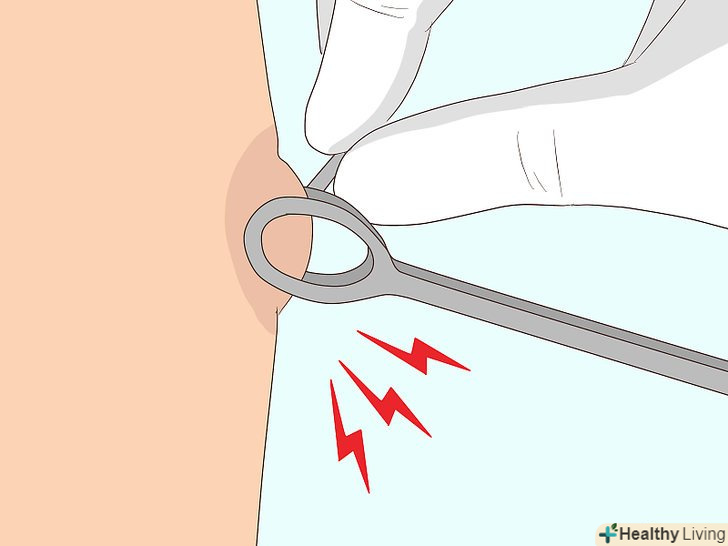 - Зніміть пов'язку через 4-5 годин після проколу. обережно зніміть пов'язку. Постарайтеся не зачепити шкіру або прикраса. Можливо, ви відчуєте біль при знятті пов'язки. [15]