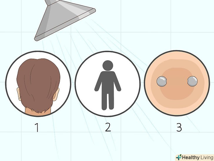 Обробляйте Пірсинг раз на день в перші 4 тижні. після першої обробки вам потрібно буде очищати місце проколу раз на день за допомогою м'якого антибактеріального мила. Наносите мило без запаху на прокол під час прийому душу і ретельно змивайте його. [19]- Кожен раз витирайте прокол чистим рушником, оскільки на брудних рушниках можуть накопичуватися бактерії. Важливо не допускати контакту проколу з бактеріями, поки той заживає.