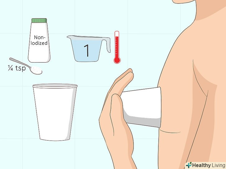 Робіть ванночки з сольового розчину 1-2 рази на день для прискорення загоєння ранки. розчиніть чверть столової ложки (1,5 грама) нейодованої солі в 50 мілілітрах теплої дистильованої води. Перелийте розчин в чашку і занурте в нього сосок. Потримайте сосок у воді 10-15 хвилин, потім промийте чистою водою і промокніть чистим паперовим рушником. [20]- Можна повторювати процедуру двічі на день до загоєння проколу.
