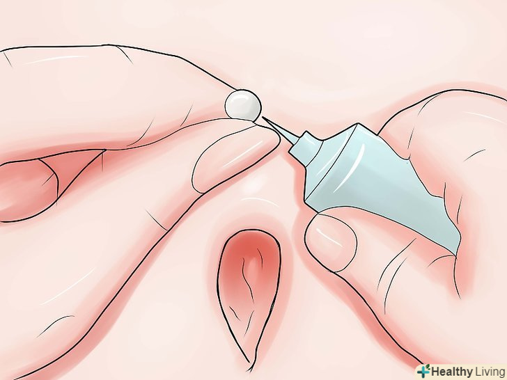 Приклейте кульку всередину пупка. оскільки більшість людей не бачать цієї частини, ви можете трохи проявити творчий підхід з вибором клею. Ви як і раніше можете використовувати методи, перераховані вище, або спробувати зубну пасту. Постарайтеся намазувати пасту у верхній частині вашого пупка так, щоб було схоже, що вона прикріплена до ювелірного виробу.